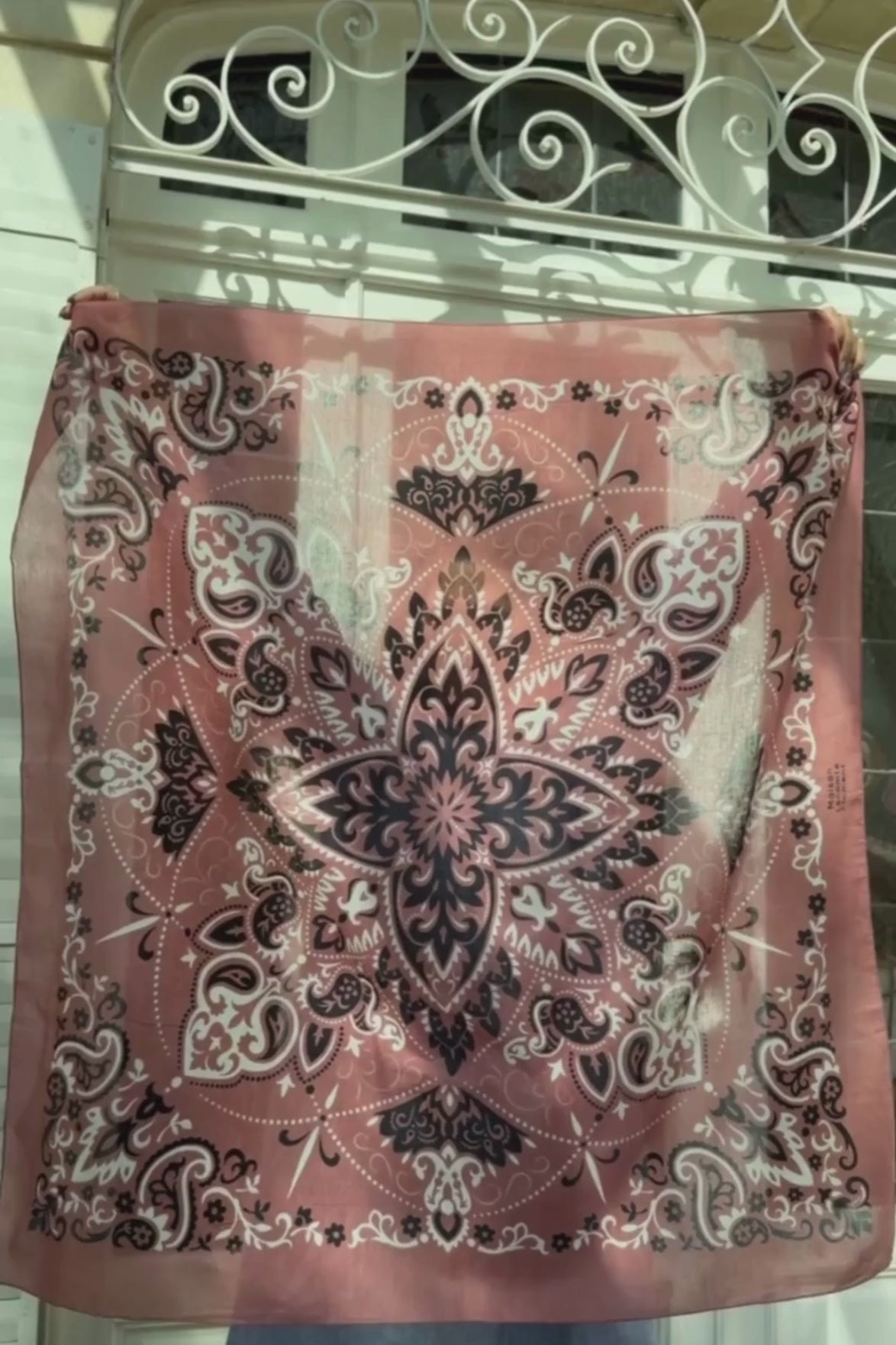Its fresh, summery rust hue harmonizes beautifully with the airy lightness of cotton voile, creating an accessory that is soft, fluid, and infinitely refined. Delicately printed, it moves gracefully with every gesture, offering an exquisite sense of comfort throughout the day.