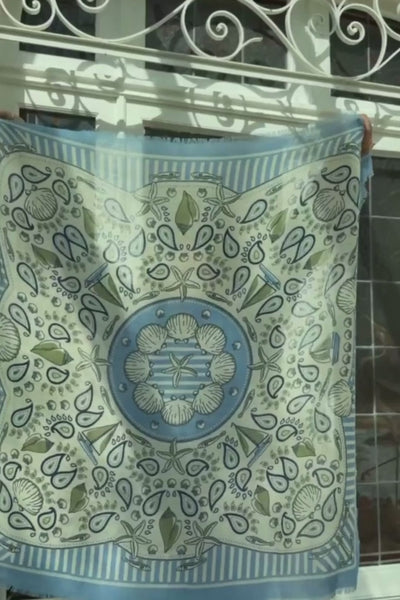 Imagined and exclusively printed for Maison Lecomte Flament, the Bretagne scarf reflects a love of travel, beautiful materials, and timeless summer elegance.