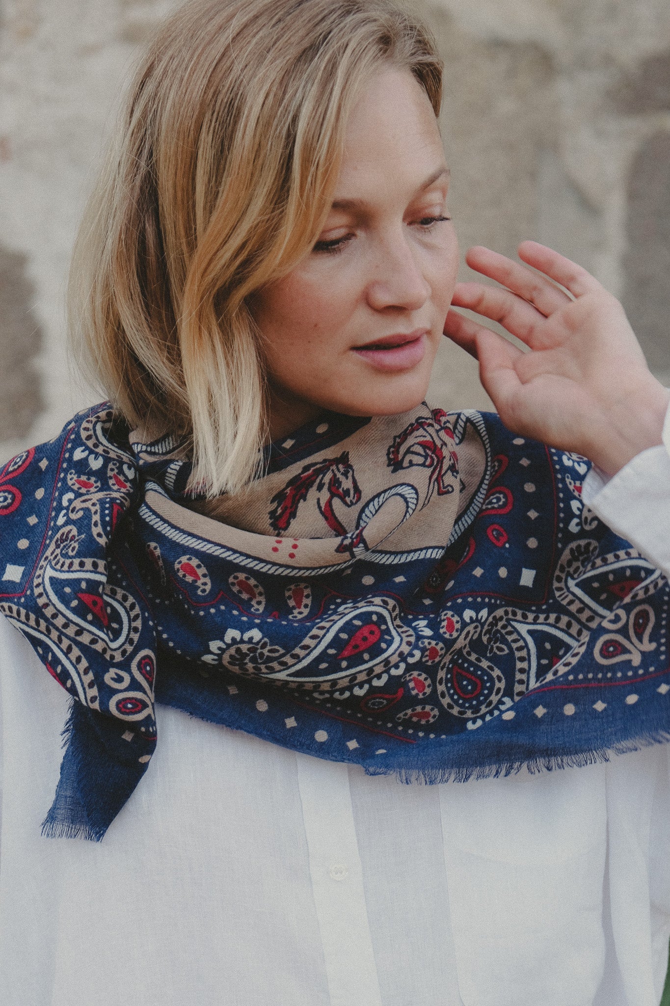 "Ce foulard foulard est la pièce que j’associe le plus facilement au quotidien et en toute saison. Je ne peux plus m’en passer !"